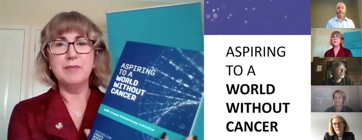 Tuesday 24 March saw the ACRF Philanthropy team breaking new ground online by transitioning an event scheduled for the Melbourne CBD to a Zoom webinar. The launch of Impact Philanthropy 2020 – Aspiring to a World Without Cancer – for 50 minutes on a Tuesday evening had people watching, listening and participating from the comfort and safety of their homes, while top researchers explained the critical role essential funds play in cutting-edge cancer research projects.