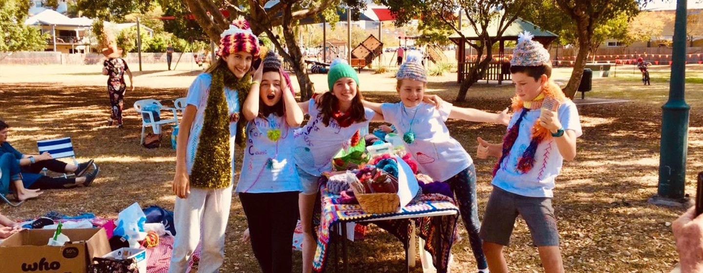 When her Mum was diagnosed with breast cancer, Sarah started to secretly knit a beanie, as she would soon go through chemotherapy and lose her hair. All five cousins agreed we wanted to be able to help people with cancer somehow. Sarah taught us all to finger knit and we began making lots of beanies and scarves and pom-poms.Â