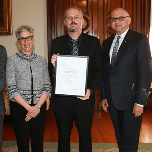 [caption id="attachment_31573" align="alignright" width="300"] (From left to right) The Honourable Linda Dessau AC, Professor Alistair Forrest and Mr Tom Dery AO, ACRF Chair.[/caption]