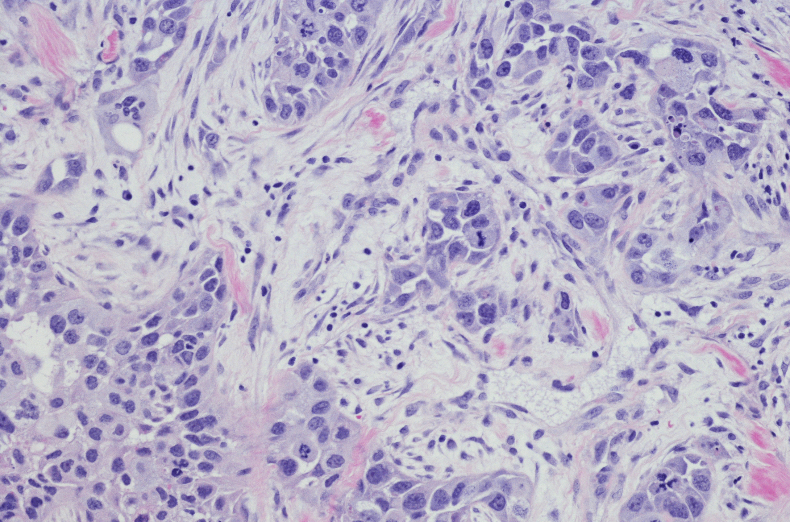 Because of its triple negative status (Oestrogen Receptor negative, Progesterone Receptor negative and Human Epidermal Growth Factor Receptor 2 negative) this cancer type generally does not respond to receptor targeted treatments.